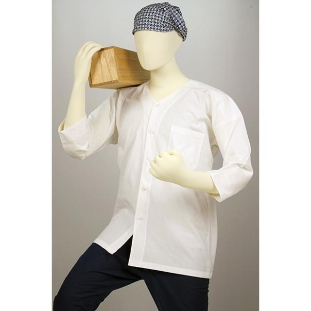 鯉口シャツ 半長尺(ロング丈)白色 SS~2L★男女兼用 七分袖 脇ポケット付き 綿100% 国産 お祭りシャツ 丸星