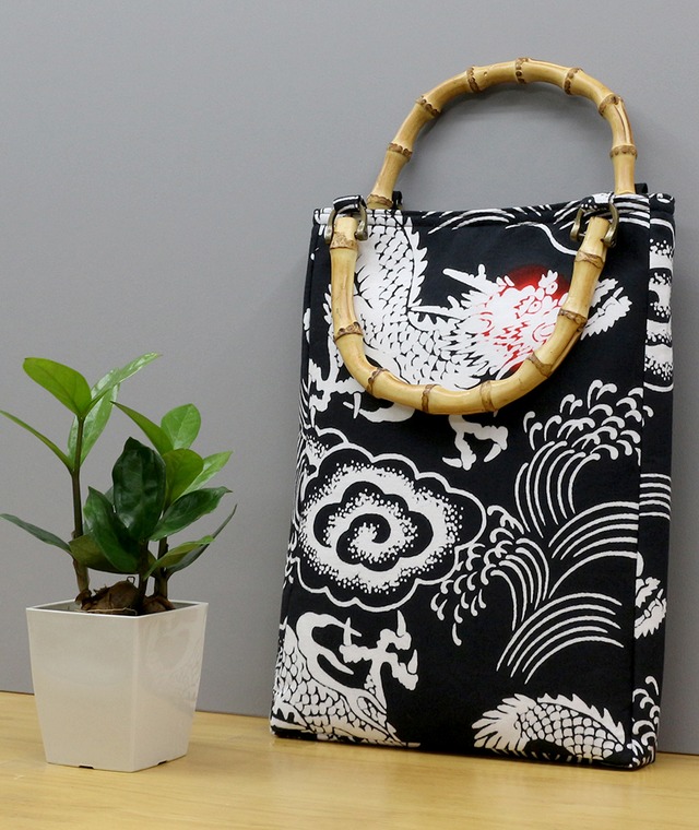手ぬぐい生地 バンブー 手提げバッグ 龍★竹手バッグ 竜 ドラゴン お祭り 丸星 日本製 B34