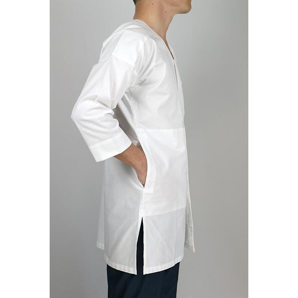 鯉口シャツ 半長尺(ロング丈)白色 5L★男女兼用 七分袖 脇ポケット付き 綿100% 国産 お祭りシャツ 丸星