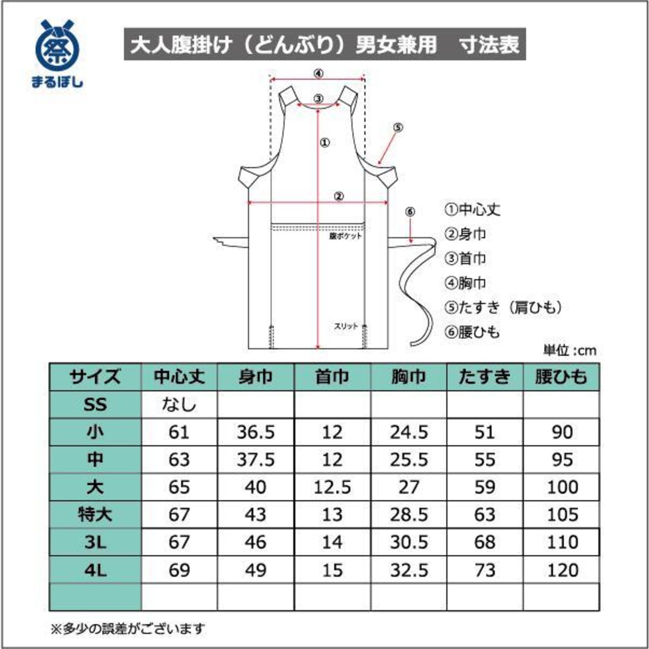 他サイズ、他カラーも扱っております。当ストアの【お祭り腹掛け(どんぶり)】ページをご覧ください。