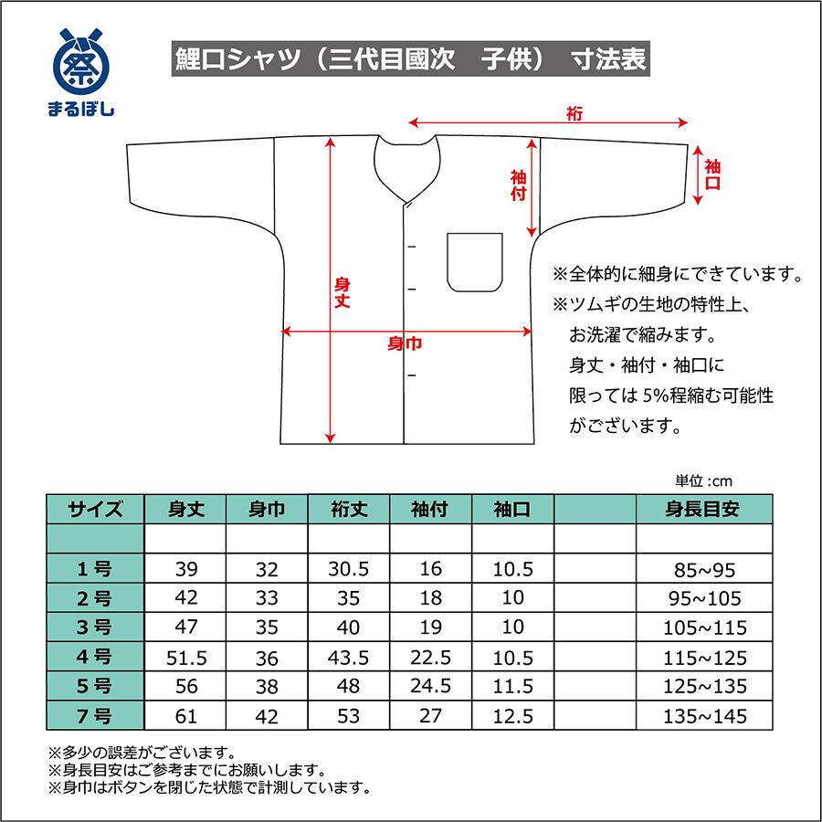 お祭りやお太鼓で着用する子供用お祭り衣装です。こちらは国内メーカーのカラー綿紬鯉口シャツで、胸ポケットがついていて、肩当てのない商品となります。