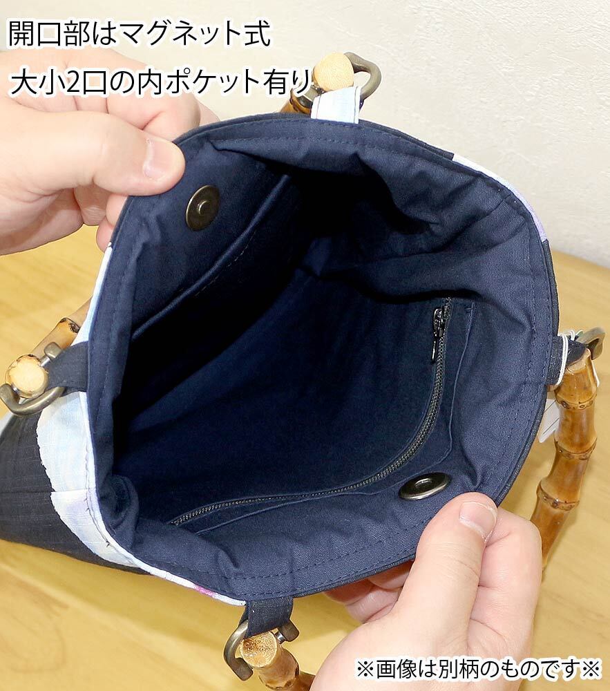 手ぬぐい生地を使用したバンブー(竹手)手提げバッグです。