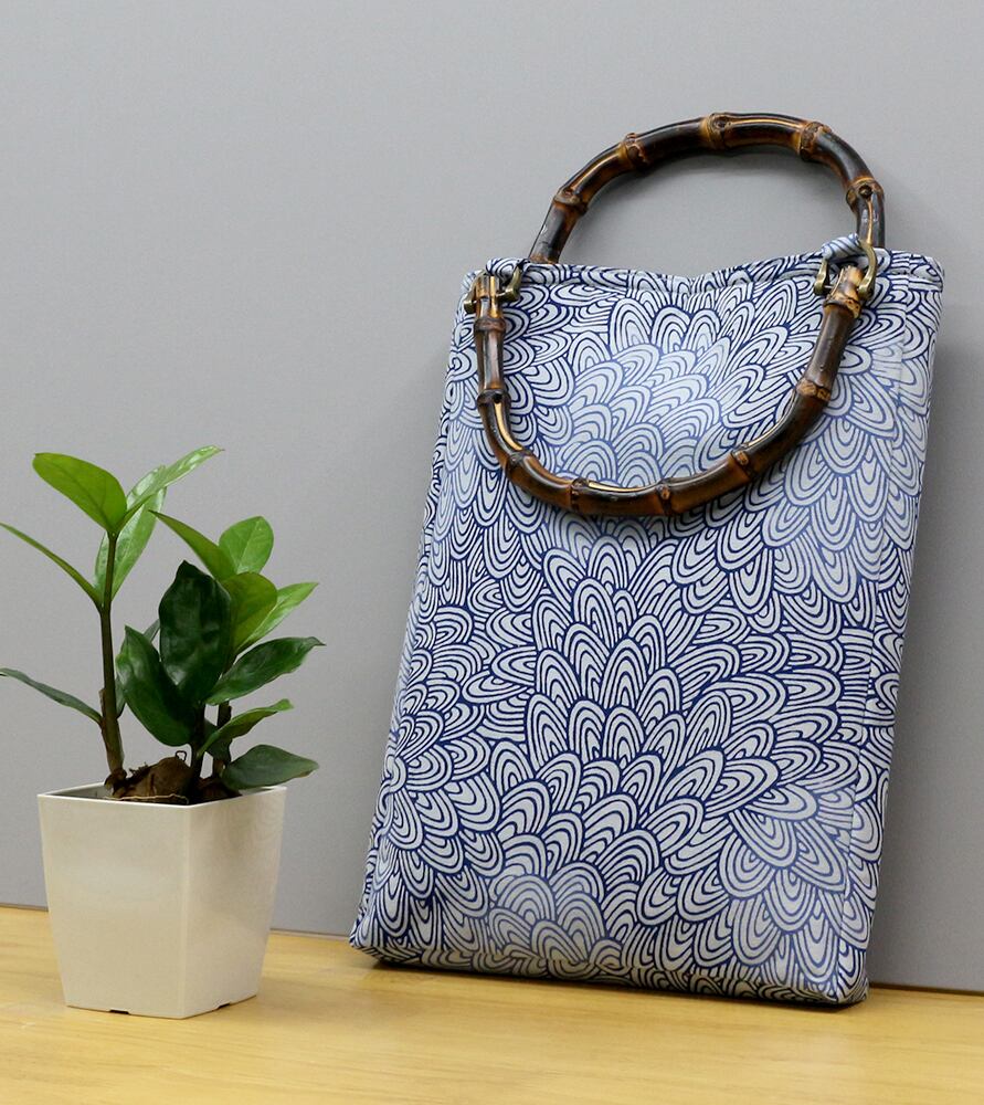 手ぬぐい生地を使用したバンブー(竹手)手提げバッグです。