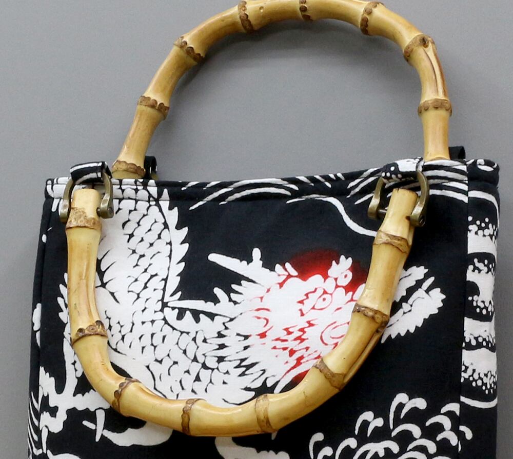 手ぬぐい生地を使用したバンブー(竹手)手提げバッグです。